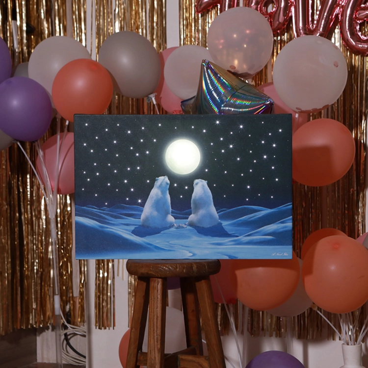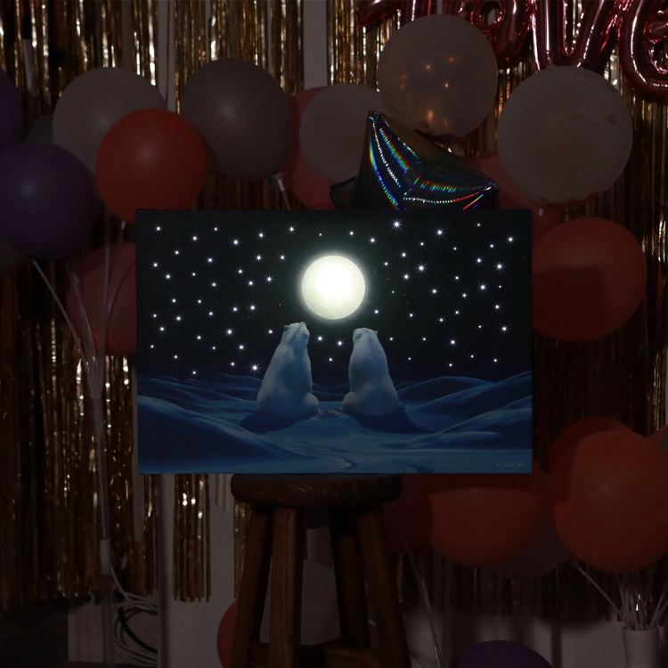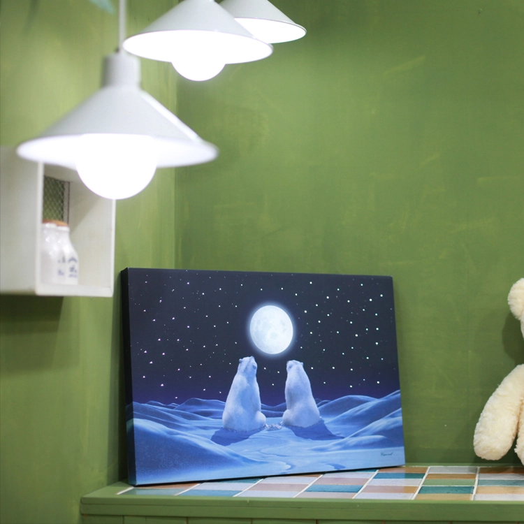 풍성한 보름달 아래 달빛을 가득 머금은 곰 두 마리